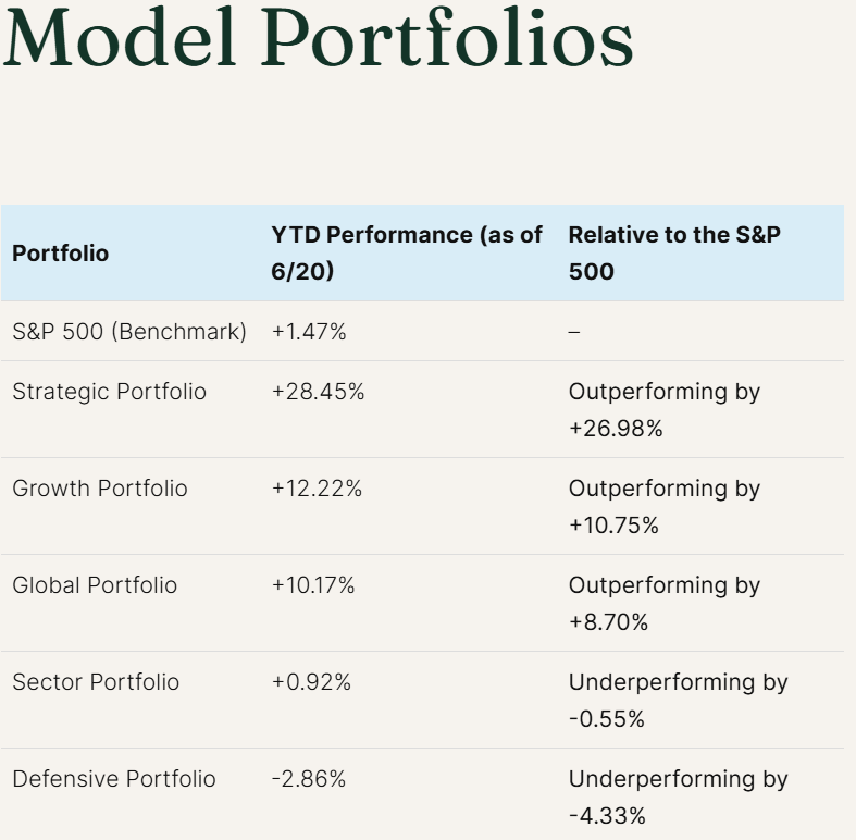 Our model portfolios continue to help our clients successfully navigate the market — outperforming the S&P 500 by ~27%.