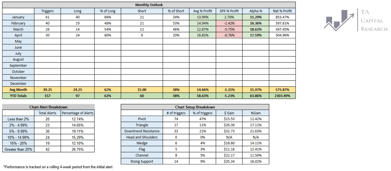 Attached is the YTD performance of our Premium Watchlist Chart Alerts through April 2025.